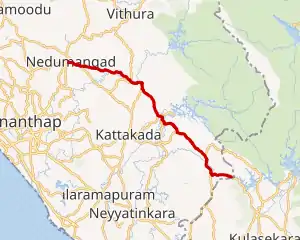 State Highway 3 (SH 3) is a State Highway in Kerala, India that starts at Nedumangad Toll junction and ends at the Kadukkara near Kerala - Tamilnadu border. The highway is 37.5 km long.[1] This was part of hitherto existed Aralvaimozhi - Nedumangad royal state highway of Travancore. Now a part of it is in Kerala and another in Tamilnadu. The road runs almost parallel to Western Ghats till the Aralvaimozhi pass.