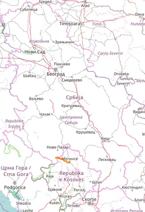 | To | Mitrovica Serbia-Kosovo[lower-alpha 1] border at Vitkoviće, Road M-2 | |||