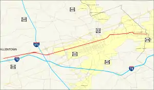 | Allentown | 7.237 | 11.647 | SR 1017 north (19th Street) | Formerly US 309 and PA 29[16] | |
