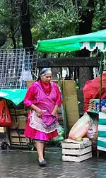 Mazahua woman, Mexico City. The Mazahuas are originating in the State of Mexico, and are a very common cliché about the indigenous peoples in Mexico City,[54] due to the high migration that have toward beyond[55]