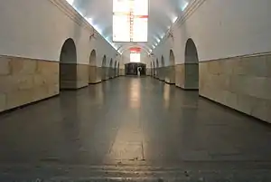 Station Square (Georgian: სადგურის მოედანი, romanized: sadguris moedani) is an interchange station on the Tbilisi Metro. It opened on 11 January 1966 and was one of the initial stations in the system. On 15 April 1979, the station began serving the Saburtalo Line. It was known as Vagzlis Moedani (Georgian: ვაგზლის მოედანი) until 2011. Vagzlis comes from the Russian word for station, "Vokzal", since it is located below the Tbilisi railway station.