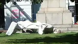 The statue toppled off its plinth in the February 2011 Christchurch earthquake.[9] It broke into two pieces and was put into storage. It was on public display during the November 2012 Icefest, and, from January 2016, was on display in Christchurch's Earthquake Museum, which is part of the Canterbury Museum, in City Mall.[10]