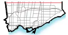 Hurontario Street / Main Street Islington Avenue Weston Road Jane Street Keele Street Dufferin Street Bathurst Street Yonge Street Bayview Avenue Don Mills Road Warden Avenue Kennedy Road McCowan Road Markham Road | ||