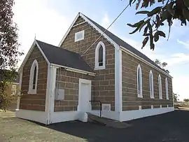 The Steinfeld Lutheran congregation was established in 1882, and met in a home until it built its own building in 1890.[2] The congregation met in this building until November 2016.[3][4] A Lutheran school existed from the 1880s until 1917, when it was forcibly closed by the state government as a result of World War I. It was replaced by a public school in 1917, which operated until 1969. German was the predominant language in the area of the early days of the school, which posed challenges for teachers dealing with children with a poor grasp of English.[5]