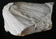 Shatter cone from the Steinheim Basin (type locality), Germany.[1] The width of hand specimen is 25 cm.