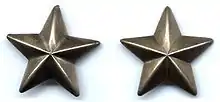 After the unification of Italy, the presence of enormous symbolic stars on the honor stage of the official ceremonies in which King Victor Emmanuel II of Italy participated led the Italians more and more to define it, in an affective way, as the "star" that protects the Italy.[2] On the Italian metallic coinage the Stella d'Italia is present on all copper emissions already from 1861 until 1907, as well as on all the coins of King Umberto I of Italy.[14] The Stella d'Italia is also recalled by the coat of arms of the Kingdom of Italy used from 1870 to 1890. In 1871, thanks to the royal decree n. 571 of December 13, 1871 signed by the minister Cesare Ricotti-Magnani, the Stella d'Italia became one of the distinctive signs of the Italian Armed Forces, the so-called "stars".[6]