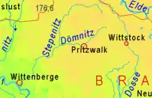 The Stepenitz is a river in the district of Prignitz, Brandenburg, Germany. It is a right tributary of the Elbe and runs for approximately 84 kilometers. The Dömnitz is a left tributary of the Stepenitz.