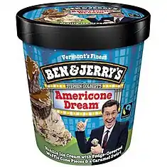 Stephen Colbert's AmeriCone Dream is a Ben & Jerry's ice cream flavor inspired by Stephen Colbert, host of the CBS television show The Late Show, and the fictionalized version of him who served as host of The Colbert Report on Comedy Central. The ice cream was introduced in 2007.[1] The same flavor became available in Canada as "Oh Cone-ada" in 2010.[2][3]