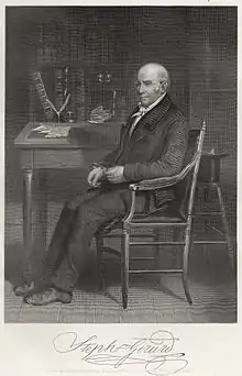 Stephen Girard (May 20, 1750 – December 26, 1831; born Étienne Girard) was a naturalized American philanthropist, banker, and slave owner of French origin.[1][2] He personally saved the U.S. government from financial collapse during the War of 1812, and became one of the wealthiest people in America, estimated to have been the fourth richest American of all time, based on the ratio of his fortune to contemporary GDP.[3] Childless, he devoted much of his fortune to philanthropy, particularly the education and welfare of orphans. His legacy is still felt in his adopted home of Philadelphia.[4]