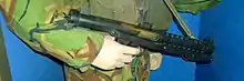 A Chilean variant was made by FAMAE as the PAF submachine gun but was different externally as it had a shorter receiver lacking the barrel shroud.[36]