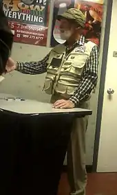 ![]() Steve Smith as Red Green, riding in the 2012 Golden Days Parade in Fairbanks, Alaska, representing Red Green local affiliate KUAC-TV | |