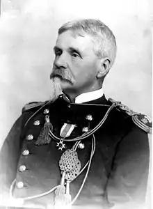 He was 64 years old at the time. He and his unit of the 10th Cavalry saw action at the battles of La Guasima, San Juan, and subsequent actions leading to the surrender of Santiago.