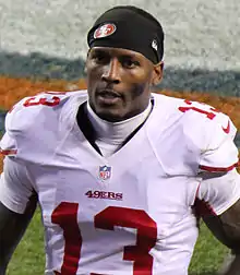 Steven John Johnson Jr.[1] (born July 22, 1986) is an American former professional football player who was a wide receiver in the National Football League (NFL). Johnson was drafted by the Buffalo Bills in the seventh round of the 2008 NFL Draft and has also played for the San Francisco 49ers and San Diego Chargers. He played college football at Kentucky. Despite never making the Pro Bowl, Johnson was the first Bills receiver to post back-to-back seasons with over 1,000 yards receiving, and has been considered one of the best draft steals in franchise history.[2]