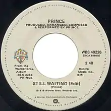 "Still Waiting" was the third US single from Prince's second album, Prince. It was Prince's first ballad to be released as a single and was mildly popular on the R&B chart, reaching #65. The ballad speaks from the perspective of a young man who hasn't yet found love but yearns for it. The track is mainly piano, acoustic guitar and synth-based and was often played live with extended instrumental solos and audience teasing. The song is a more traditional R&B ballad, before Prince established himself with trademark sexual romps like "Do Me, Baby" and "International Lover".