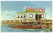 The first social club built at Stiltsville was constructed during the late 1930s and named the Calvert Club.[3] The Miami Beach Rod & Reel Club was organized in 1929 and held its first official outing at the Stiltsville Calvert Club in August 1938. A club picture was taken in front of the club, which was popular enough to have picture postcards printed with its image.