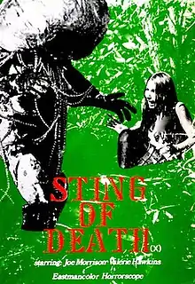 Sting of Death is a 1965 American science fiction horror film directed by William Grefé, written by Al Dempsey, and starring Joe Morrison, Valerie Hawkins, Deanna Lund, John Vella, and Jack Nagle. Its plot concerns five female college students who head to the Florida Everglades for a holiday, but instead of fun in the sun, run into trouble with a mutated, bloodthirsty, and quite deadly jellyfish-man-monster.