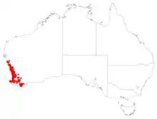 It occurs throughout western parts of Western Australia's Southwest Botanical Province, ranging from Kalbarri in the north, south to Albany. In many areas it is very common. It grows in deep sand, amongst heath, shrubland and woodland.[1][2]