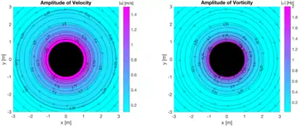 The solution of vorticity in cylindrical coordinates follows as: