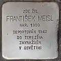 HERE LIVED FRANTIŠEK MEISL BORN 1900 DEPORTED 1942 TO THERESIENSTADT MURDERED IN AUSCHWITZ |