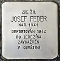 HERE LIVED EVŽEN FEDER BORN 1910 DEPORTED 1942 TO THERESIENSTADT MURDERED IN SCHWARZHEIDE |
