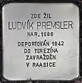 LUDVÍK PREMSLER BORN 1886 DEPORTED 1942 TO THERESIENSTADT MURDERED IN RAASIKU | Karlovo náměstí 9 50°01′40″N 15°12′04″E |