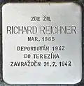 HERE LIVED RICHARD REICHNER BORN 1865 DEPORTED 1942 TO THERESIENSTADT MURDERED 31.7.1942 |