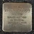 HERE LIVED ARNOLD STRÁNSKÝ BORN 1882 DEPORED 1942 TO THERESIENSTADT MURDERED 1942 IN IZBICA |