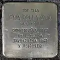 HERE LIVED EMA POLLAKOVÁ BORN 1900 DEPORTED 1942 TO THERESIENSTADT MURDERED 1942 IN REJOWIEC |