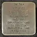 HERE LIVED HELENA KELLNEROVÁ NÉE HAUSELOVÁ BORN 1888 DEPORTED 1942 TO THERESIENSTADT MURDERED 1942 IN REJOWIEC |