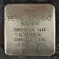 HERE LIVED HEŘMAN STRÁNSKÝ BORN 1910 DEPORTED 1942 TO THERESIENSTADT MURDERED 1942 IN MAJDANEK |