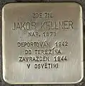HERE LIVED JAKOB KELLNER BORN 1873 DEPORTED 1942 TO THERESIENSTADT MURDERED 1944 IN AUSCHWITZ |