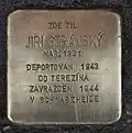 HERE LIVED JIŘÍ STRÁNSKÝ BORN 1921 DEPORTED 1942 TO THERESIENSTADT MURDERED 1944 IN SCHWARZHEIDE |