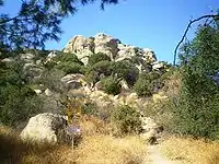 Stoney Point, also known as the Stoney Point Outcroppings or Chatsworth Formation,[2] is a Los Angeles City park near the north end of Topanga Canyon Boulevard (State Route 27) in Chatsworth, Los Angeles, California, part of the city of Los Angeles. Stoney Point is a popular destination for hikers, equestrians and also with rock climbers because of its large boulders, which afford many opportunities to practice the sport of bouldering. The top of the rock formation offers excellent views of Chatsworth, the Santa Susana Mountains, Coyote Pass, and the entire San Fernando Valley.