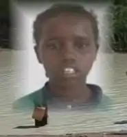 The stoning of Aisha Ibrahim Duhulow was a public execution carried out by the Al-Shabaab militant group on 27 October 2008 in the southern port town of Kismayo, Somalia. Duhulow's father and aunt stated that she was a 13-year-old girl and that she had been arrested and stoned to death after trying to report that she had been raped. Initial reports had stated that Duhulow was a 23-year-old woman found guilty of adultery; she was, however, under the age of marriage eligibility. The execution took place in a public stadium attended by about 1,000 bystanders, several of whom attempted to intervene but were shot by the militants.[1][2][3]