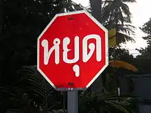 - Hong Kong SAR uses a version of the sign that says 停 tíng, and stop