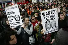 StWC also organised the protest against the 2007 Australian visit of former US Vice President Dick Cheney for his role in the Iraq War and occupation.[8] The protest took place on 22 February, during Cheney's three-day visit to discuss Australia's unpopular involvement in Iraq and general commitment to the "War on Terror".[12] Around 200 protesters were refused by police to march through the streets of Sydney, which was under high security for the Vice President's visit.[13]