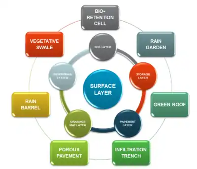 Other LID like concepts around the world include sustainable drainage system (SUDS). The idea behind SUDS is to try to replicate natural systems that use cost effective solutions with low environmental impact to drain away dirty and surface water run-off through collection, storage, and cleaning before allowing it to be released slowly back into the environment, such as into watercourses.