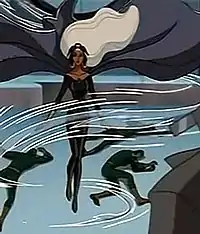 She appears in Wolverine and the X-Men voiced by actress Susan Dalian, though her role in the show is much smaller compared to other versions. She wears a somewhat modified version of her Uncanny X-Men/Fantastic Four costume. Storylines such as her past as a child thief and involvement with the Shadow King have maintained.[2] In the episode "Overflow", Professor X shows Wolverine a future vision of a destroyed Africa and reveals that Storm is the one who destroyed it. It is not long before the Shadow King takes control of Storm's body. Shadow King manipulates Storm into fighting the X-Men and destroying parts of Africa. After Iceman, Shadowcat, and Beast are knocked unconscious Wolverine and Cyclops are left to save Storm while Emma Frost telepathically battles the Shadow King in Storm's mind. Emma separates the Shadow King from Storm's body long enough for him to be destroyed and Storm leaves Africa to rejoin the X-Men. Storm says that she is staying alongside her family (the X-Men) and that they must ensure when Professor awakens, it is a world worth living in. Ororo was also in a romantic relationship with Angel up until his transformation into Archangel. Such a close romantic relationship was never found in the comics or other animated series. Compared to the other media representations of the character this adaptation of Storm is the most reserved and timid, a far cry from her comic book counterpart and other televised adaptations. For instance, this Storm has been knocked out or incapacitated numerous times more often than other X-Men of the show to focus more on Wolverine. Storm, in the comics as well as the other animated X-Men series, was one of, if not the last X-Men to be taken down in a fight. However, her importance to the team is invaluable as the team recognizes her as the strongest and most powerful X-Man. When berated by a hoard of Sentinels and Storm is knocked out, Cyclops stresses how important it is to wake her to attack before the robots annihilate them all.