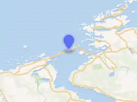 The bridge sits on the border between Hustadvika Municipality and Averøy Municipality and passes through an archipelago as it links mainland Norway with the island of Averoy. It is one of the country's official national tourist routes.[1]
