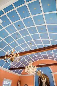 The Church was originally built sometime in the 12th century. The story relates that there is one night when a group of sailors tried to navigate back to Iceland in a storm. The southern coast of Iceland is notorious for its hidden reefs and rough coast. The distressed sailors prayed to God for a safe return and vowed to build a church wherever they landed. When they ended their prayer an angel, seemingly made of light, appeared before their bow. The angel guided them through the rough surfs and led the crew into a bay for safe landing. The sailors, making good on the promise, built a wooden church at the site and named it Strandarkirkja. The bay nearby is named Angel's Bay (Engilsvík in Icelandic) to commemorate the incident.[2] Many miracles have been attributed to Strandarkirkja and there was a time when it was one of the richest churches in Iceland from the donations of Icelanders coming from all over the country in hopes of having their prayers and wishes realized.[3]