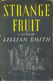 Strange Fruit is a 1944 bestselling debut novel by American author Lillian Smith that deals with the then-forbidden and controversial theme of interracial romance. Its working title was Jordan is so Chilly, but Smith retitle it Strange Fruit prior to publication.[2] In her 1956 autobiography, singer Billie Holiday wrote that Smith named the book after her 1939 song "Strange Fruit", which was about lynching and racism against African Americans. Smith maintained the book's title referred to the "damaged, twisted people (both black and white) who are the products or results of our racist culture."[3][4][5]