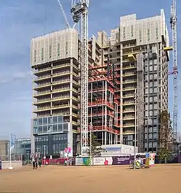 Stratford, like many areas of London, particularly in the East End, suffered significant de-industrialisation in the 20th century.[15] This was compounded by the closing of the London Docks in the 1960s.[16] Around this time, the Stratford Shopping Centre was built, beginning efforts to guide the area through the process of transformation from a working-class industrial and transport hub to a retail and leisure destination for the contemporary age.[15] These efforts continued with the Olympic bid for Stratford, and the ongoing urban regeneration work going on there.[17]