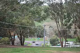 ![]() Looking towards the main intersection at Strath Creek from Pioneer Park | |||||||||||||||