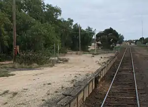 Strathmerton is a closed railway station on the Goulburn Valley railway in the town of Strathmerton, Victoria, Australia. The station opened at the same time as the railway from Shepparton to Cobram on 1 October 1888, with the line to Tocumwal not opening until 28 February 1905, ending at a temporary terminus on the south side of the Murray River,[1] the line not completed into Tocumwal until July 1908.[2] The junction between the lines was to the north of the station, facing down trains.