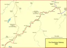 The Strathspey Railway was a railway company in Scotland that ran from Dufftown (in Moray to Boat of Garten (in Badenoch and Strathspey]], Scotland. It was proposed locally but supported by the larger Great North of Scotland Railway (GNoSR), which wanted to use it as an outlet towards Perth. The GNoSR had to provide much of the funding, and the value of traffic proved to be illusory. The line opened in 1863 to Abernethy, but for the time being was unable to make the desired connection to the southward main line. Although later some through goods traffic developed, the route never achieved its intended purpose.