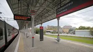 Streshnevo (Russian: Стрешнево) is a station on the Moscow Central Circle of the Moscow Metro that opened in September 2016. The station is in the border of the Sokol and Shchukino districts of Moscow; however the station's name comes from the adjacent Pokrovskoye-Streshnevo District. The original name was slated to be Volokolamskaya; but the city government agreed to change the name prior to the start of service.[1]