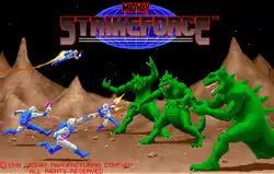 Strike Force is a horizontally scrolling shooter released in arcades by Midway in 1991. In the same way that 1990's Smash TV is a modernized reimagining of Robotron: 2084 with two-player simultaneous play, Strike Force is a modernized reimagining of Defender with two-player simultaneous play. Strike Force was not widely distributed and was not ported to any home systems.