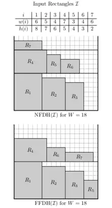 | First-Fit Decreasing-Height (FFDH) | |||
