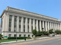 Stripped Classicism (or "Starved Classicism" or "Grecian Moderne")[1] is primarily a 20th-century classicist architectural style stripped of most or all ornamentation, frequently employed by governments while designing official buildings. It was adapted by both totalitarian and democratic regimes.[upper-alpha 1] The style embraces a "simplified but recognizable" classicism in its overall massing and scale while eliminating traditional decorative detailing.[3][4][5][6] The orders of architecture are only hinted at or are indirectly implicated in the form and structure.[upper-alpha 2]