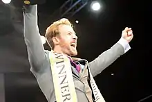 ![]() Stuart Hatton Jr. moments after winning Mr. Gay World 2014 | |